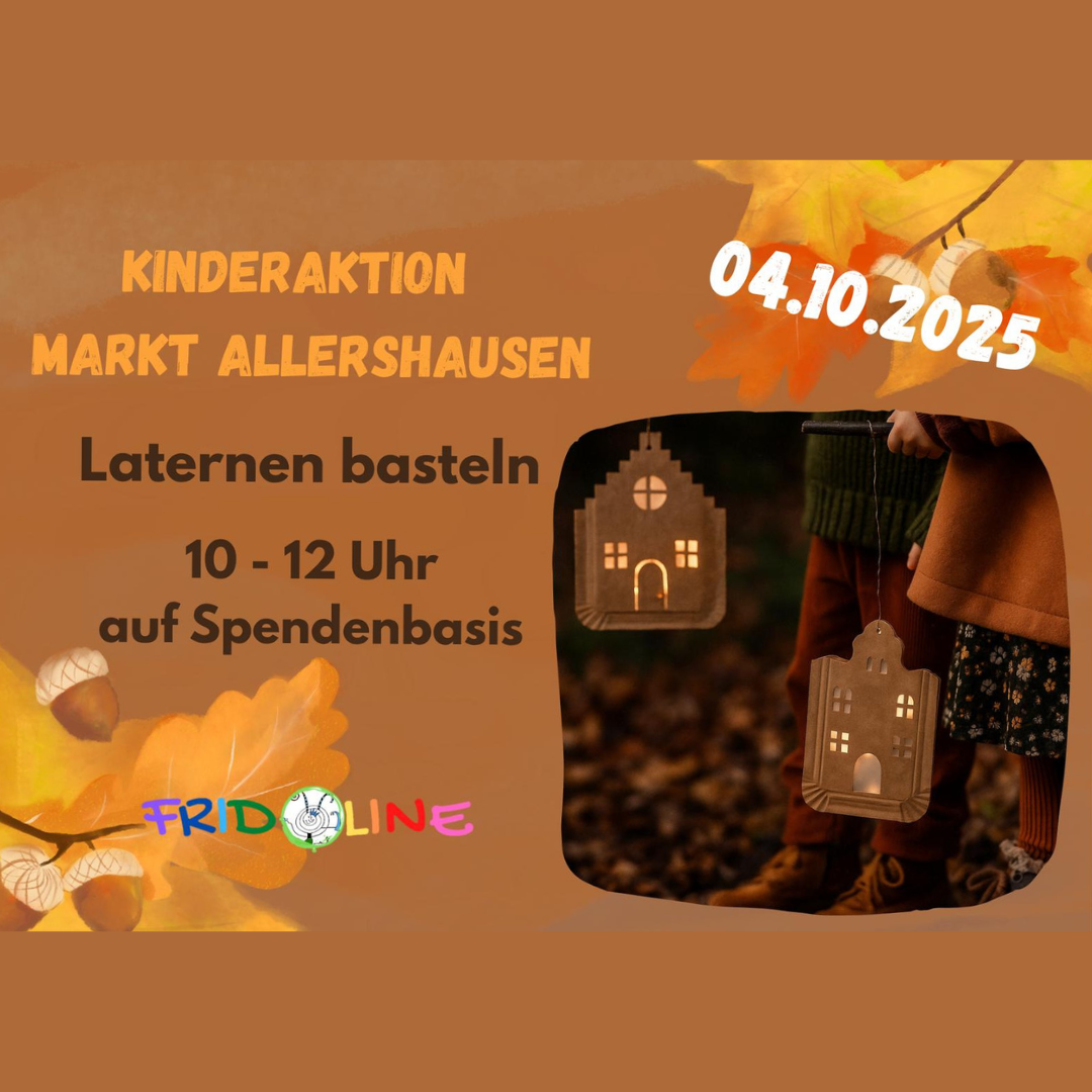 Ein tolles Kinderprogramm (wir basteln Laternen) erwartet Euch auf den Markttagen Allershausen (Oktober Markttag am 04.10.2025)
